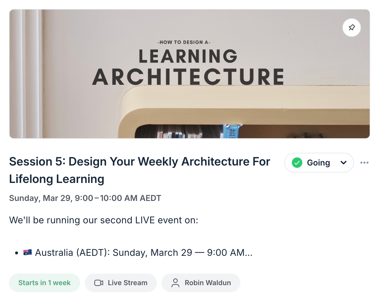 - Priority access to upcoming live workshops. Our latest workshop has just been announced in the Circle community, and it'll be held on the 28th of March: